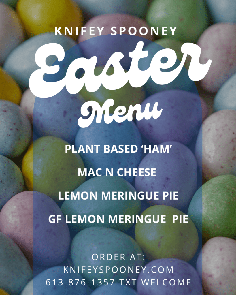 I wouldn’t say we’re the religious type. Deeply spiritual and what one would call “woow woow”, yes. But as foodies , Easter is a great eatin holiday. We’re showing up with some snacks, and hope you have a great time sharing it with people that are cool. So, in alignment with our capacity right now-here is an abridged Easter menu. We’re offering them until it feels like “stop, this is too much!”